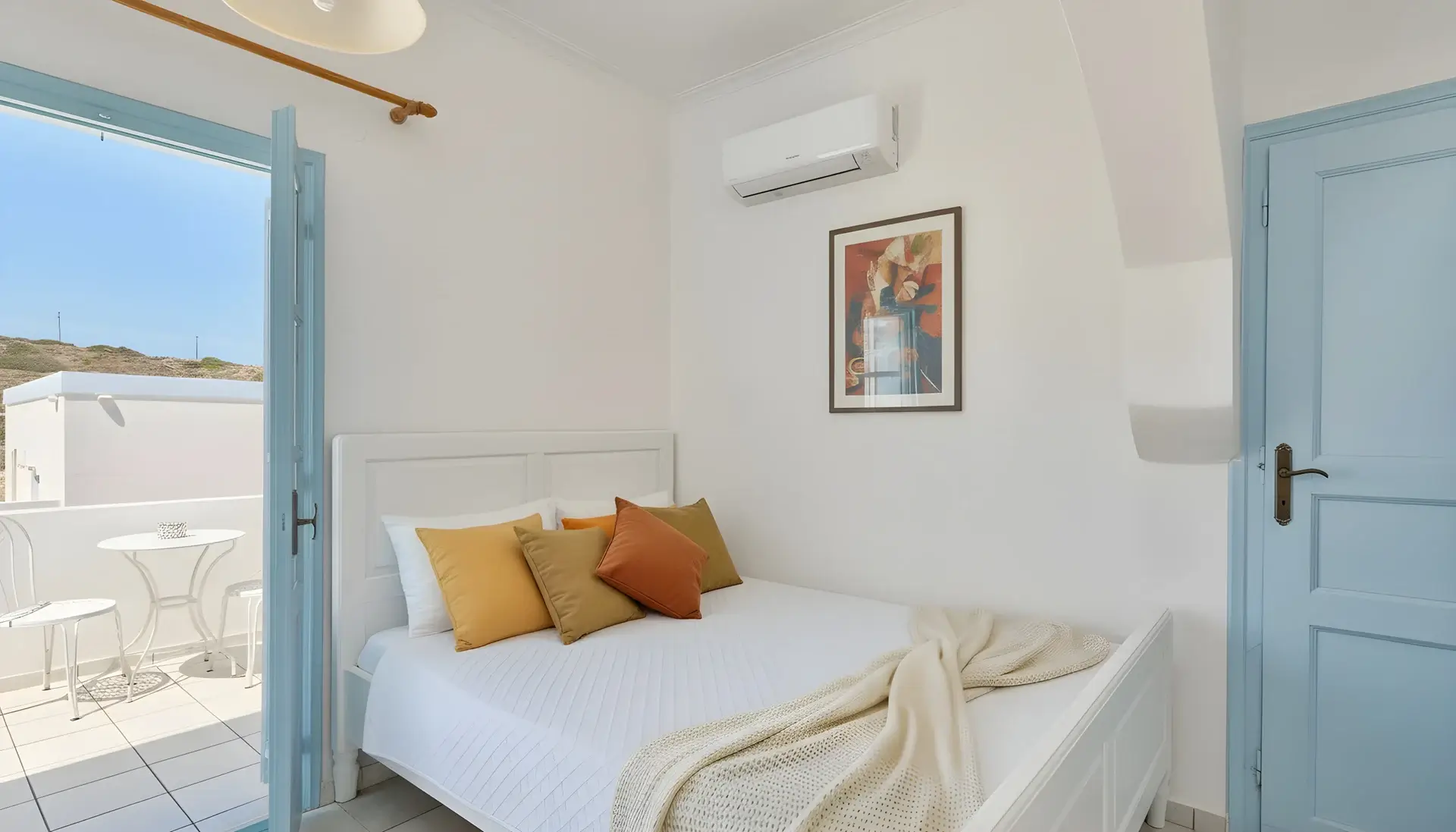 If you are searching for Rooms to Rent in Syros that combine elegant design with soothing mountain views and a serene atmosphere, this room is a truly inspired choice.
